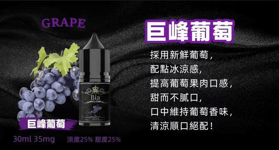巨峰葡萄: 採用新鮮葡萄 配點冰涼感 提高葡萄果肉口感 甜而不膩口 口中維持葡萄香味 清涼順口絕配